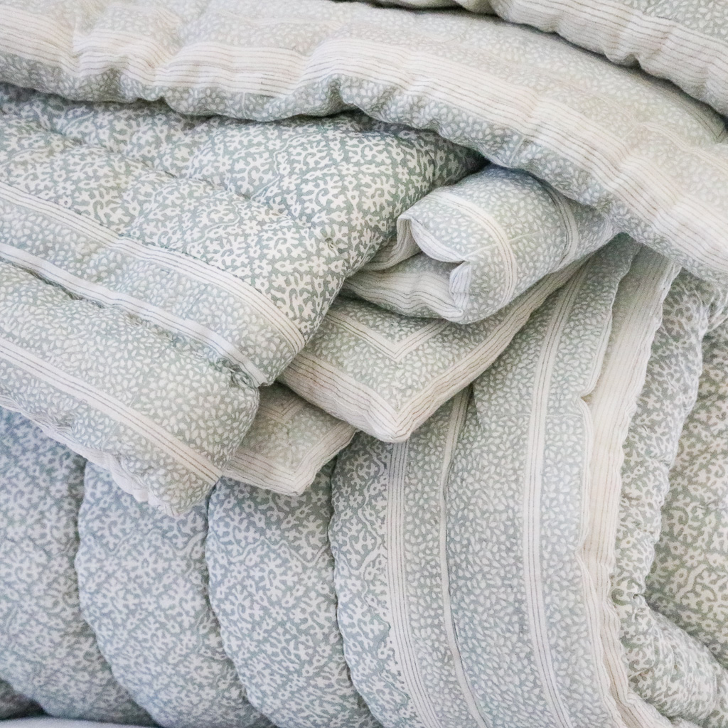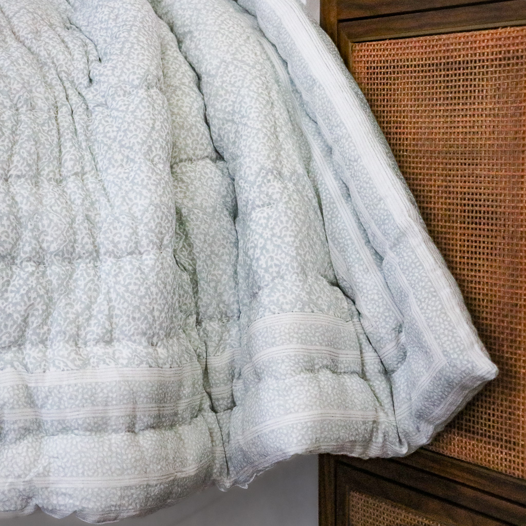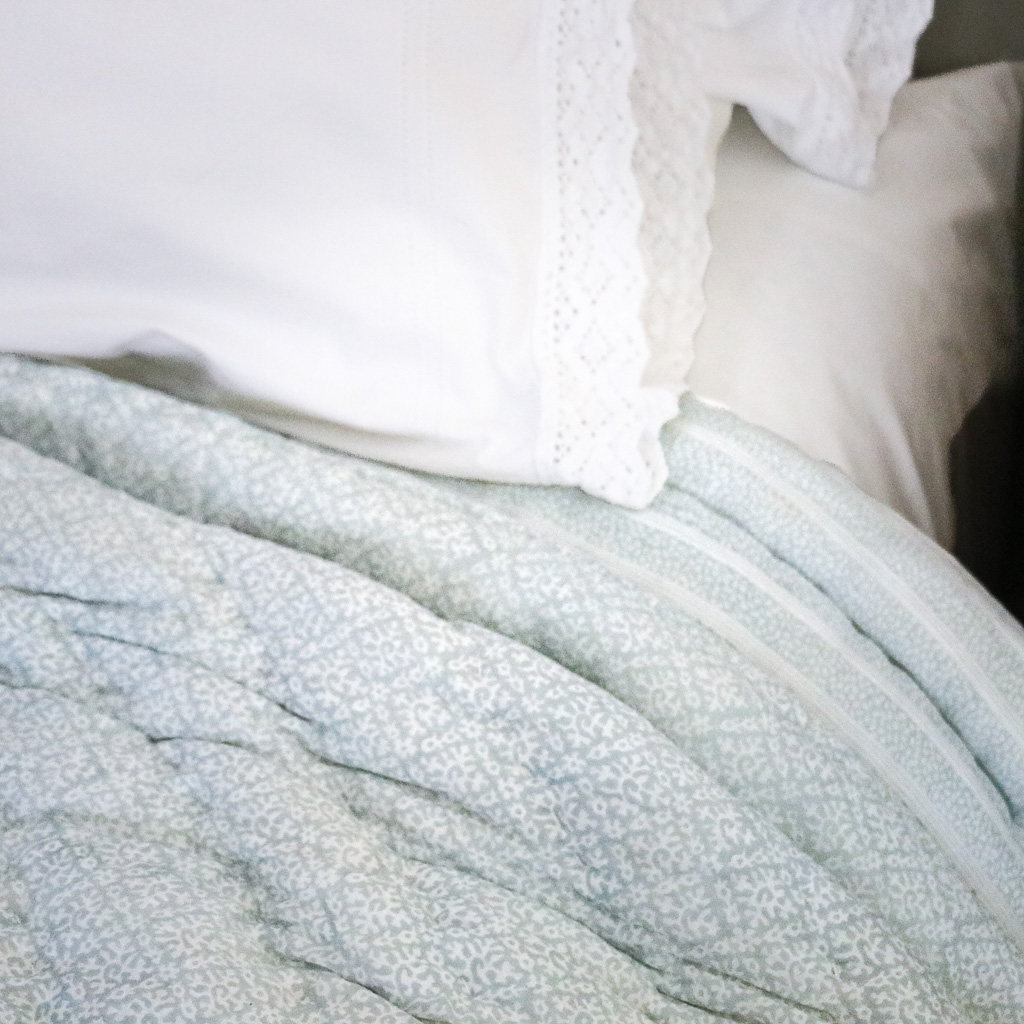 This Hazel quilt in two hues allows for flexibility in the bedroom — two coordinating colour choices in one.